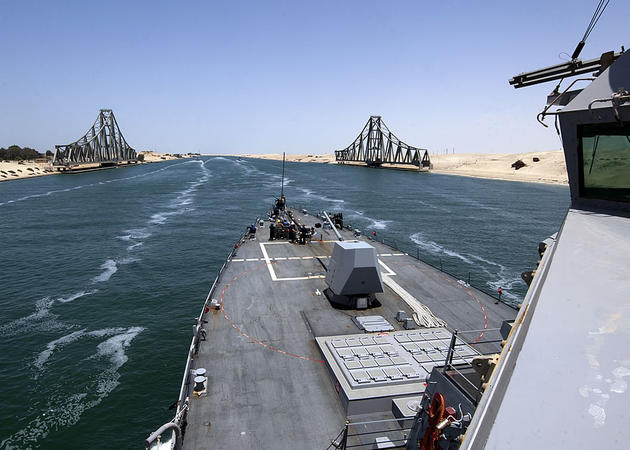 SUEZ CANAL (June 2, 2012) The guided-missile destroyer USS James E. Williams (DDG 95) transits the Suez Canal. James E. Williams is deployed to the U.S. 5th Fleet area of responsibility conducting maritime security operations, theater security cooperation efforts and support missions as part of Operation Enduring Freedom. U.S. Navy photo by Mass Communication Specialist 3rd Class Daniel J. Meshel.