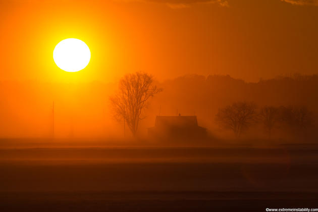 Mammatus fill the sky over flooded fileds in western Iowa during the historic 2011 Missouri River flood.