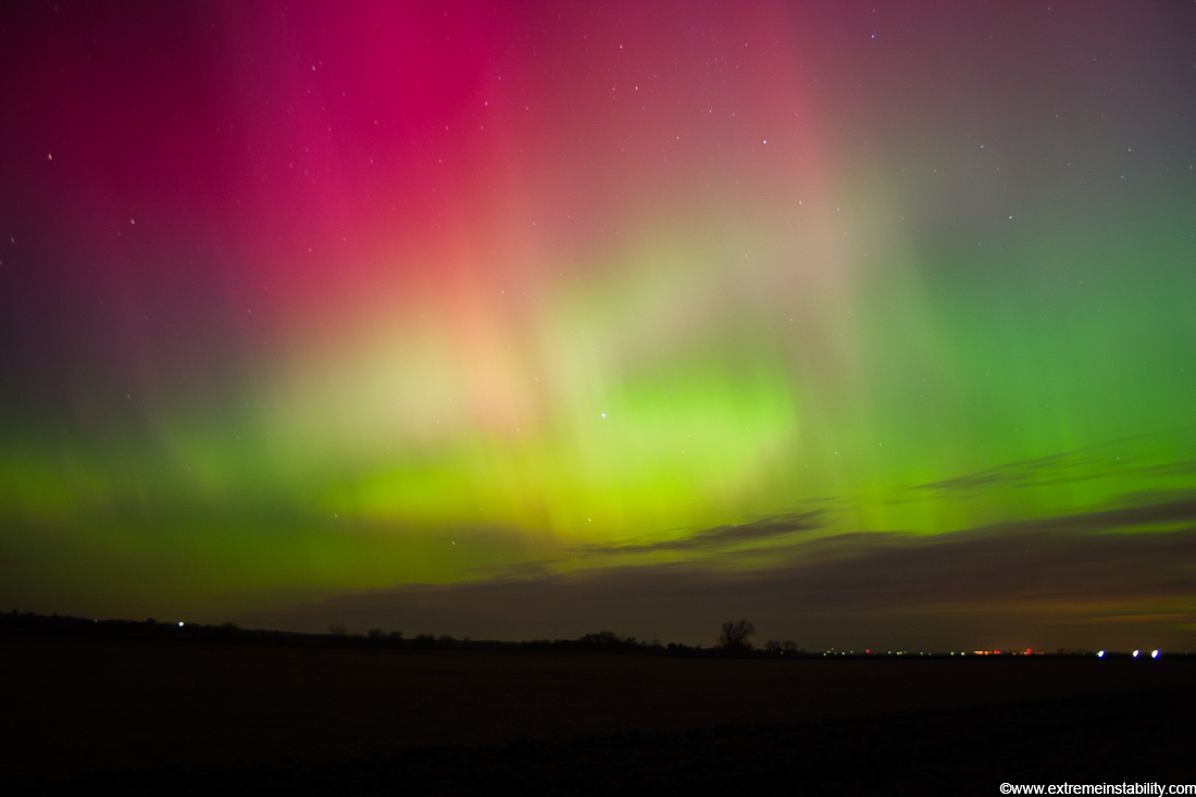 Extreme class geomagnetic storm produces bright auroras far south over eastern Nebraska November 7-8, 2004.