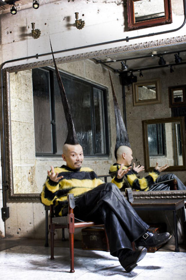 Katsuhiro Watanabe of Japan has the worlds tallest fauxhawk, it measured in at 113.5cm (3.72ft). [Photo: Guinness World Records / PA]