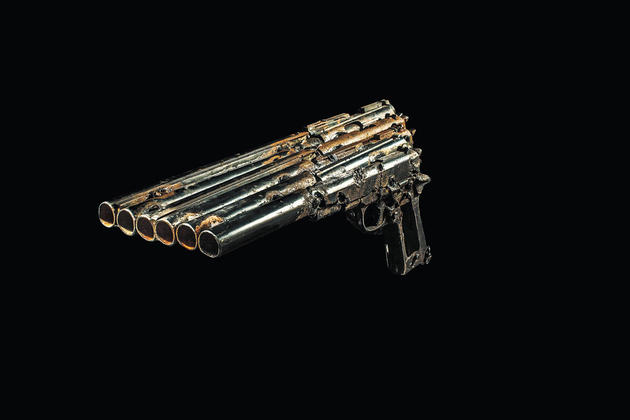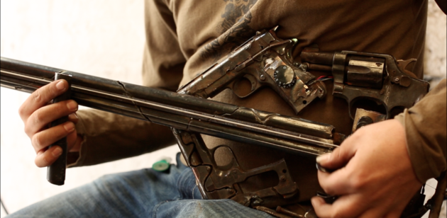 Pedro Reyes has been making these unique creations since 2008. He uses old weapons that are no longer in use such as pistols, rifles and shotguns.
