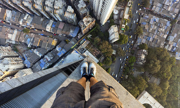According to Vitaly, exploring Mumbai "from the above" as he normally does is quite problematic. Most of apartment and office buildings have guards and getting through them is almost impossible. On the other hand it's very common to stumble upon families living on the roofs of Mumbai who are not very excited to see uninvited guests at their "homes".