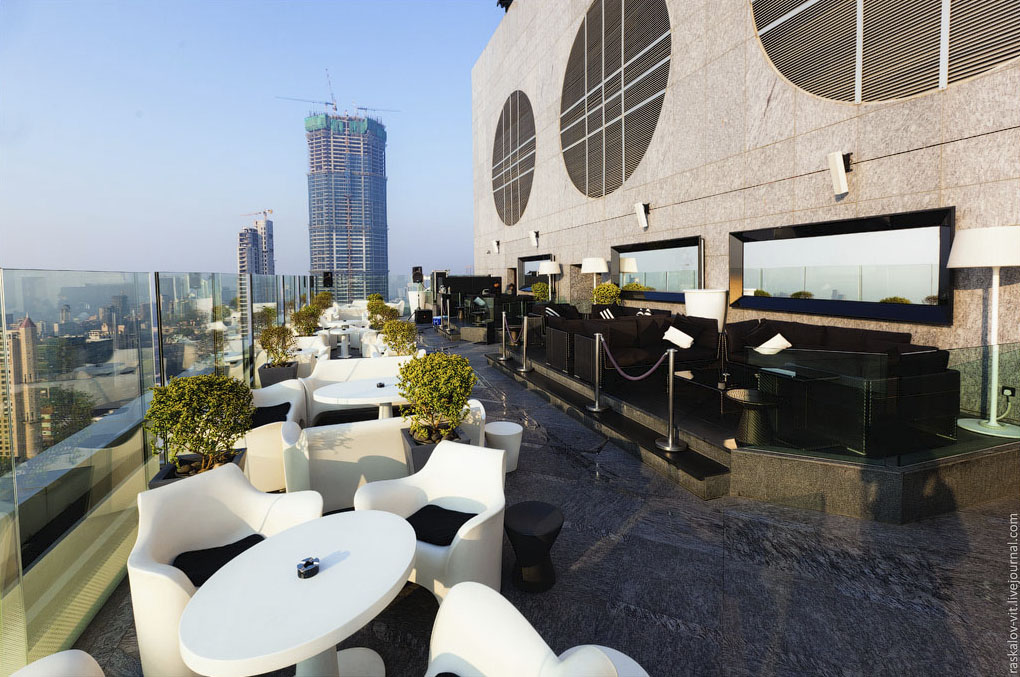 Because Vitaliy didn't meet hotel's restaurant (seen above) dress code, he climbed up to the roof of the building to take some photos of it.