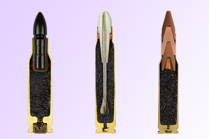 1. 5.56x45 loaded with a steel projectile in a copper half-jacket to protect the bore