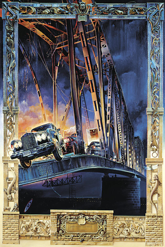 As if Valery's painting style wasn't unique enough, in some cases he paints things a little stretched-looking. In this example, Valery is trying to portray the sheer size of this Jaguar (these cars are long and fairly low in real life, hence the horizontal stretch.)
