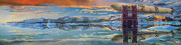Sometimes Valery combines completely unrelated subjects in his paintings, which once reinforced by a mind boggling backdrop setting, convey a very powerful feeling.