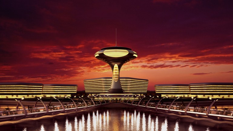 A main central tower has a revolving restaurant for luxurious dinners that will have a 360 degree view of the resort.