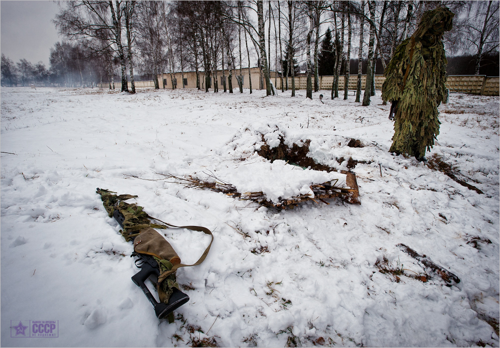 Snipers are trained to make their "laying" holes, where they can spend several days waiting for their target.