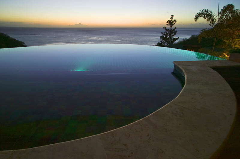 The water in Jade Mountain’s infinity pools is purified by a highly sophisticated system, the primary mechanical filtration being through a zeolite sand filter and with the primary sterilization being ozone. Each pool receives individually filtered and sterilized water, and pool water cycles through the sterilization and filtration facilities approximately six times per day.