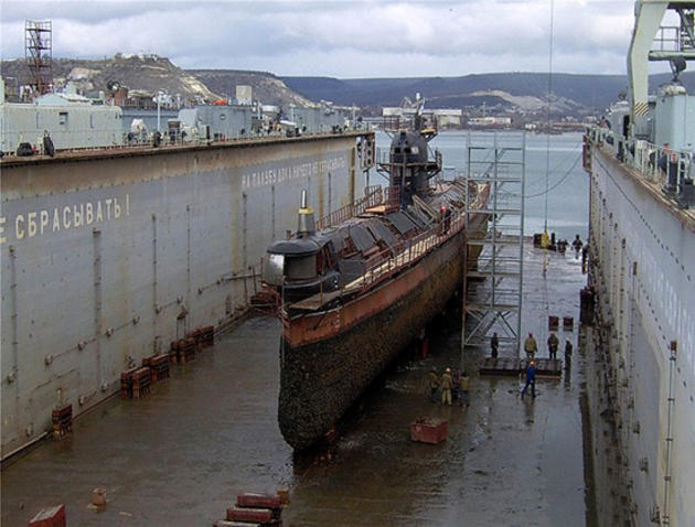 On the 18th of March the Zaporozhye submarine was delivered to the floating dock.