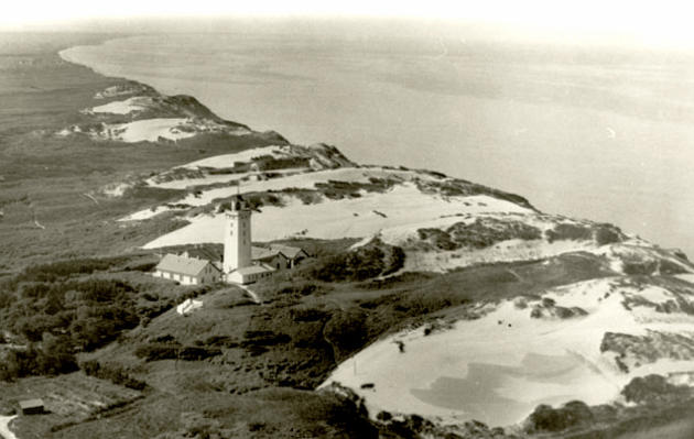 The dunes got so high from erosion, that the lighthouse could no longer be seen from the sea.