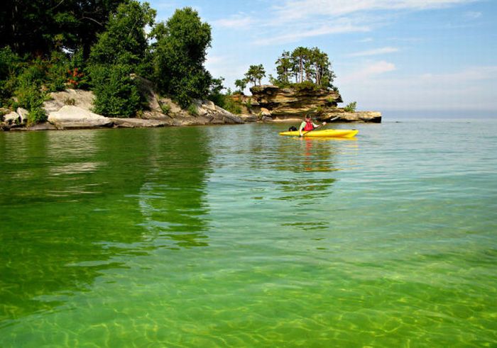 Eroded by water over the course of thousands of years, this free standing rock is located in Lake Huron - Port Austin, Michigan to be exact. This is a very popular outdoor attraction due to its beauty and crystal clear waters.