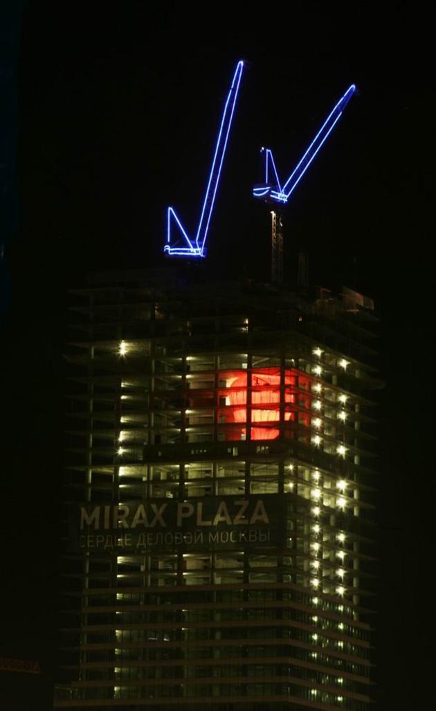 As soon as it becomes dark in Moscow, a giant heart began to beat inside the new Mirax Plaza complex.