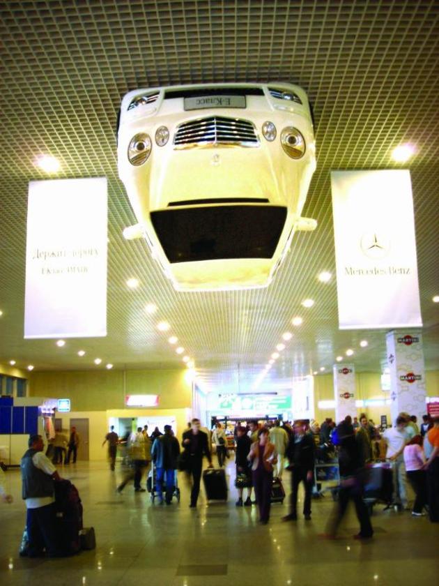 In 2007 an unusual ad appeared in Domodedovo airport. It was made in a form of the Mercedes-Benz car mounted on the ceiling.
